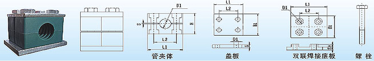 管夾體 | 蓋板 | 雙聯(lián)焊接底板 | 螺栓 | |||||||||||||