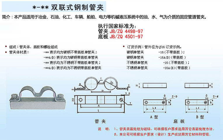 產(chǎn)品特點:雙管夾結(jié)構(gòu)簡單,安裝簡便快捷,是管道施工的優(yōu)良產(chǎn)品。