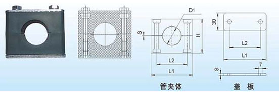 外徑 | 管夾體 | 蓋板 | 焊接底板 | 螺栓 | ||||||||||
