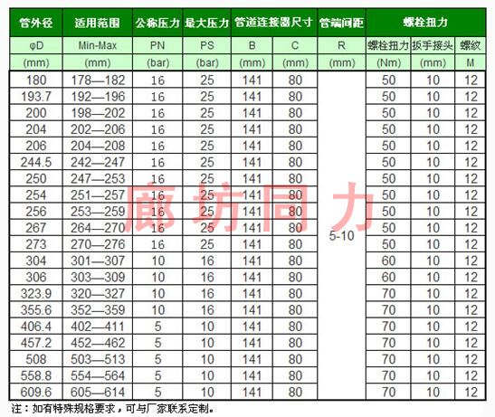 應(yīng)用領(lǐng)域:應(yīng)用于船舶、電廠、輸油、輸氣、給排水及污水處理等管道緊急搶修工程中,使管道的連接施工更加方便、可靠、安全。