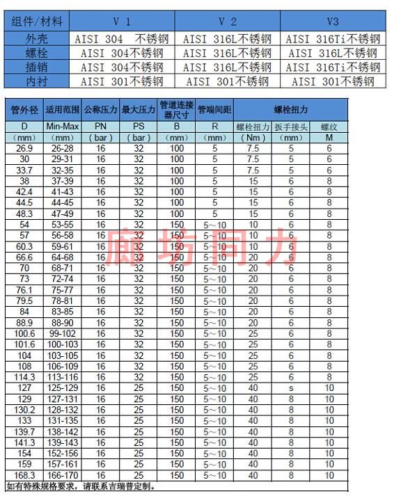 產(chǎn)品特點:此產(chǎn)品采用新型設(shè)計,體積小操作方便快捷,管線不需要特殊處理即可完成連接和修補(bǔ)。柔性連接免焊接,特別適合薄壁不銹鋼管的低壓連接。允許軸向橫向偏移,快捷高效,比不銹鋼法蘭成本低。內(nèi)附導(dǎo)電條可有效傳導(dǎo)設(shè)備管線的靜電,硅橡膠密封套適用于食品醫(yī)藥設(shè)備管線的連接,可拆卸重復(fù)使用。